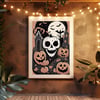 Funny scary creepy skulls halloween printable art decoration party. Digital creative poster for halloween night. Decoration wallart funny character halloween