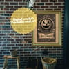 Scary pumpkin halloween art decoration vintage poster. Horror pumpkin face for Halloween party. Wallpaper cellphones or card invitation