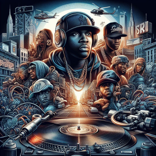 Step into the golden era of hip-hop with this iconic digital artwork, "Gangsta Hip-Hop Legends." This bold design celebrates the legends of urban street culture, featuring powerful imagery of DJs, turntables, and a bustling city backdrop that embodies the raw energy of hip-hop's roots.