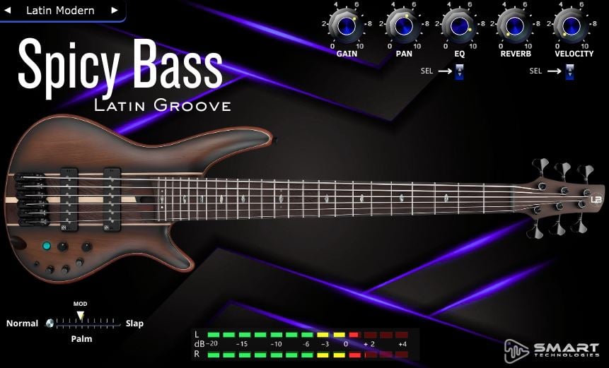 Spicy Bass Latin Groove by LatinBox.it is a bass designed specifically for Latin music. Its deep, clear sound delivers a powerful punch in the low end (low B string), while its defined mids make it stand out in dense mixes of salsa, merengue, bachata, urban style, or cumbia. Sampled from a high-end bass, it achieves a massive, attacking sound, ideal for laying down syncopated rhythms. It also includes samples of fingerstyle, slap, and palm muting for more percussive rhythms.