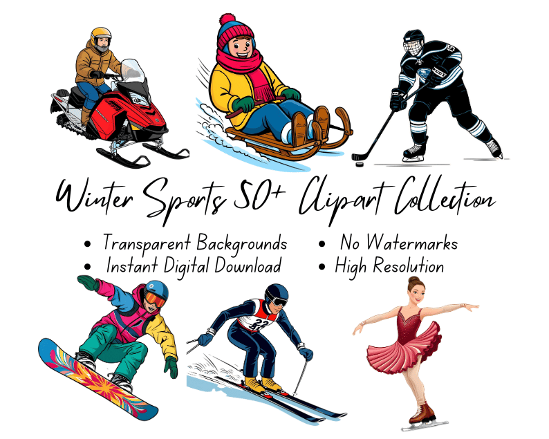Winter Sports 50+ Clipart Collection | High-Resolution Digital Printables | Instant Download | No Watermark