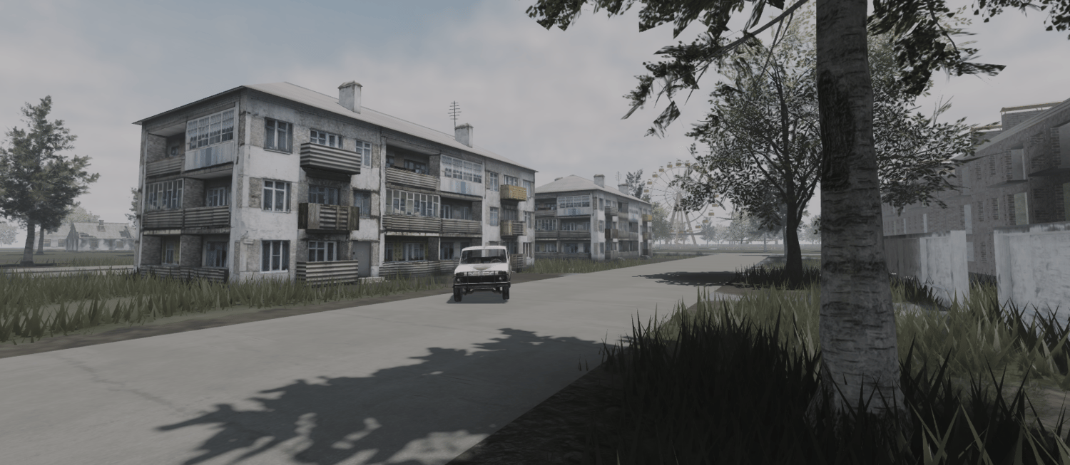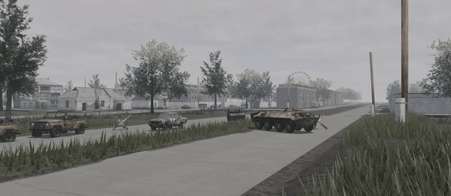 An expansive map of an abandoned Ukraine town with a factory, villages, forestry, etc. There's a lot waiting for you to explore and check out such as the abandoned buildings and a rusty amusement park.