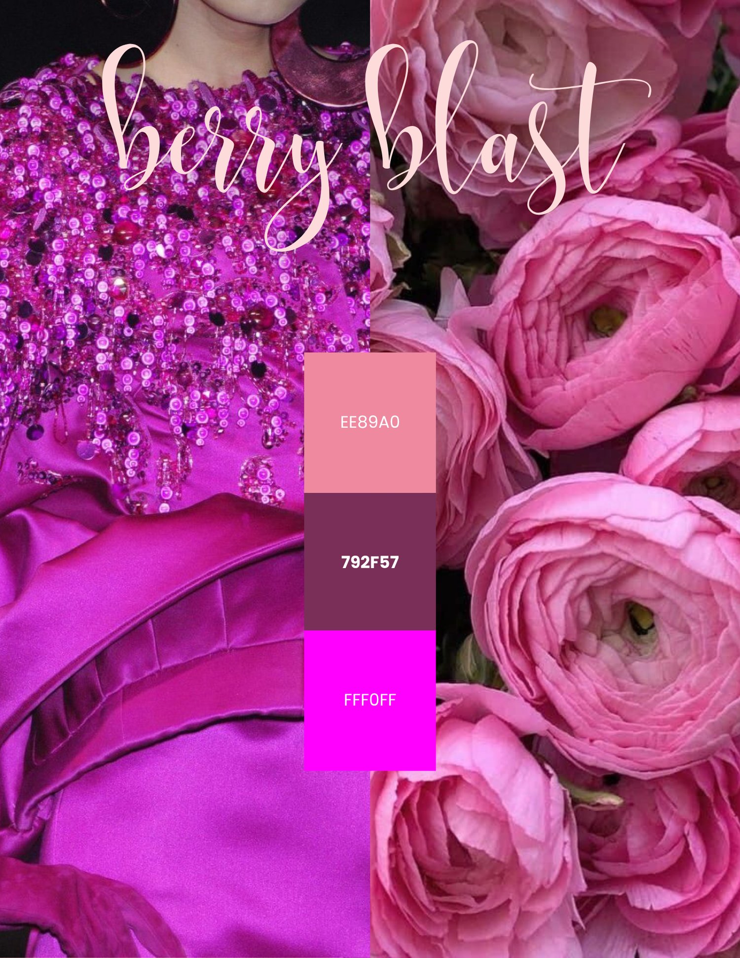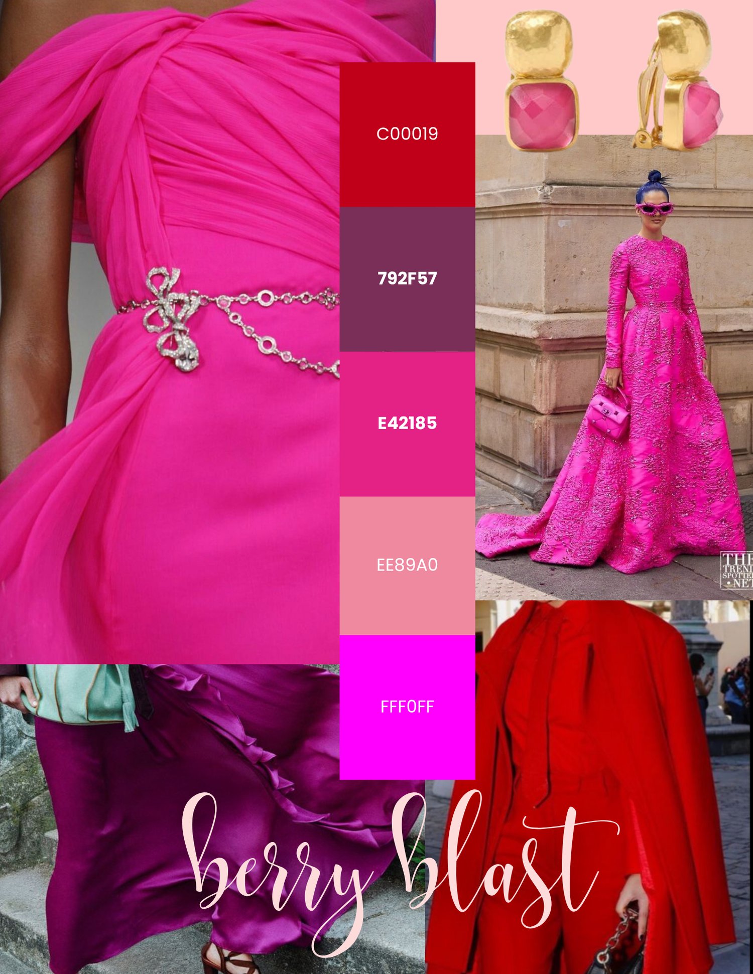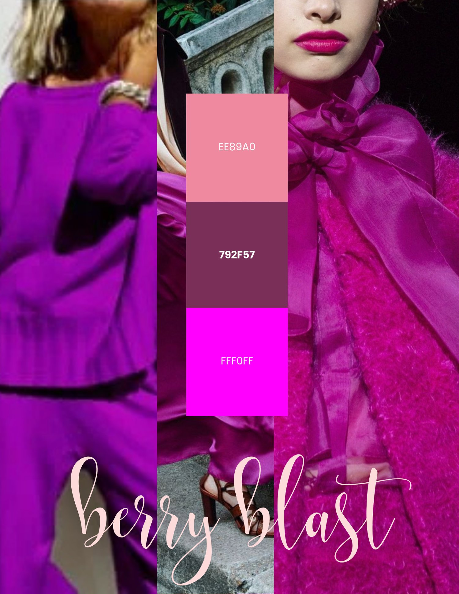See real outfit combinations using the Berry Blast palette so you know exactly how to style each color.
