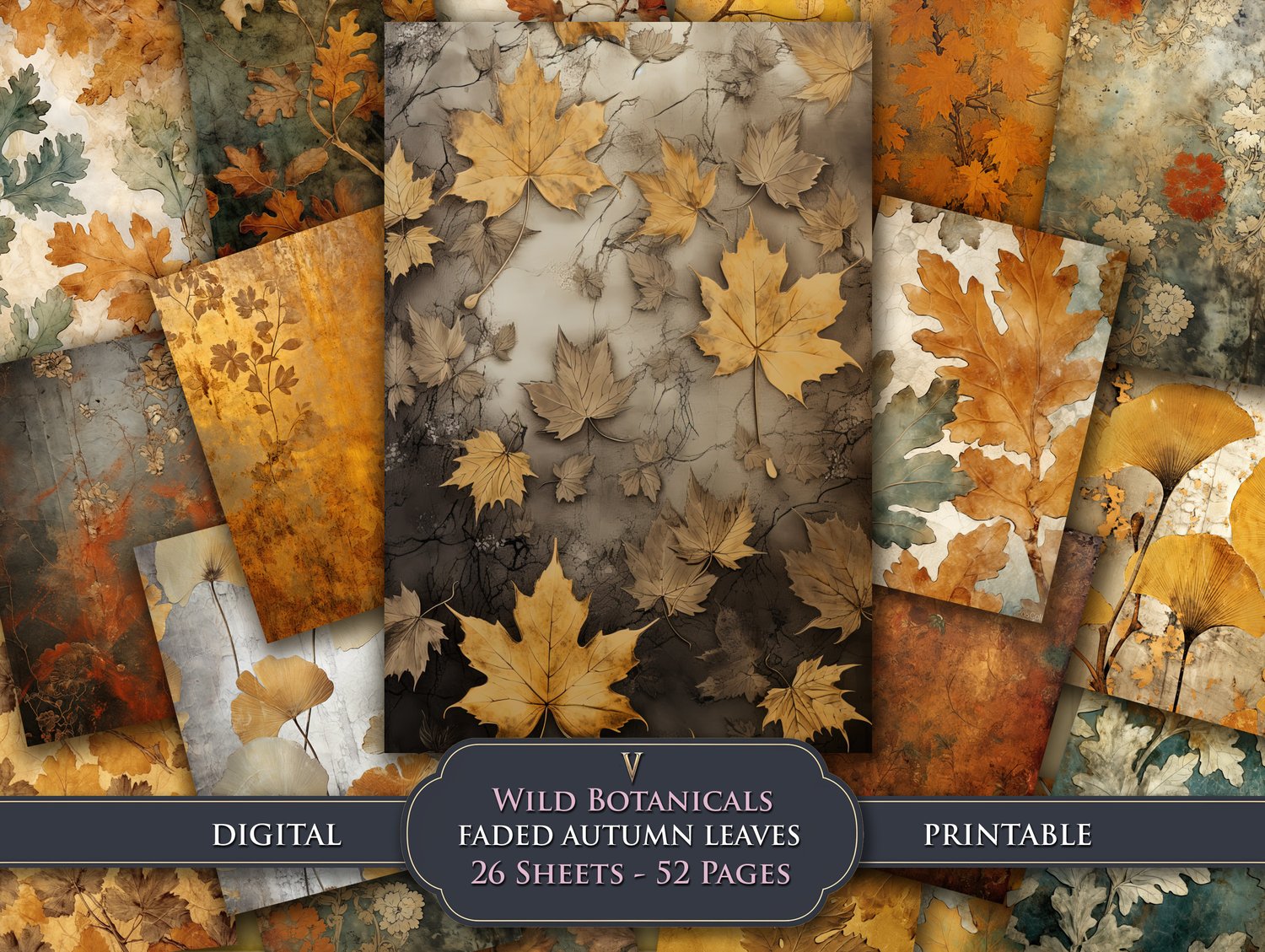 Wild Botanicals Faded Autumn Leaves Junk Journal Printable Fall Pages