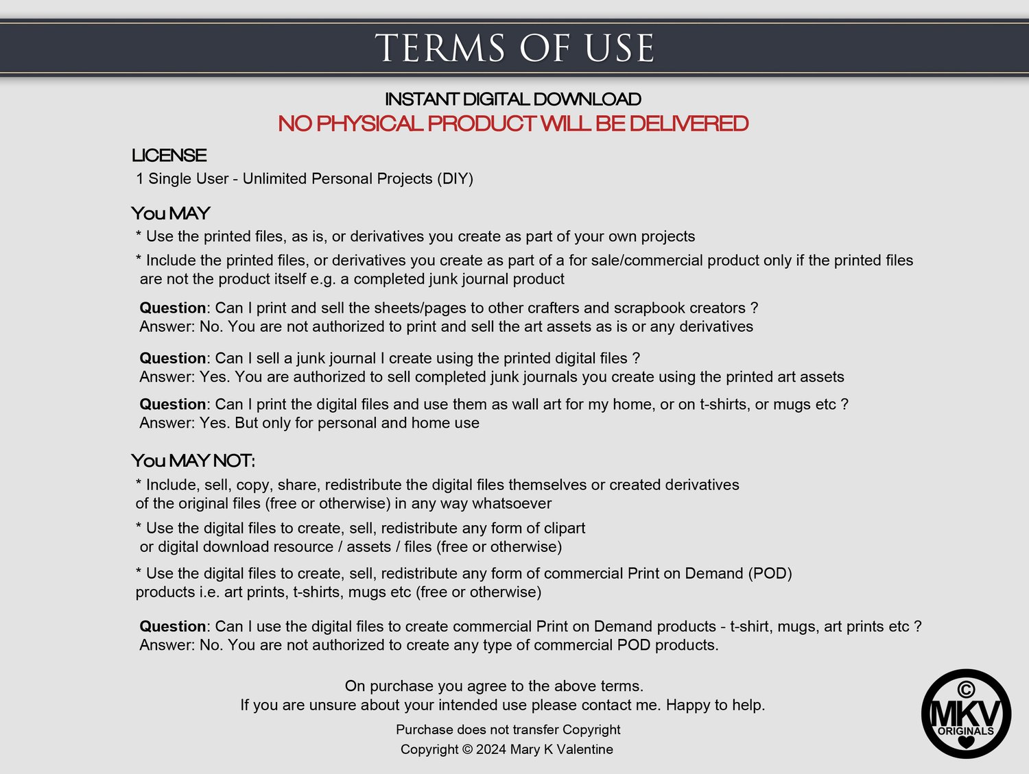 Question: Can I sell a junk journal I create using the printed digital files ?
