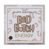 Printed with a cute pink leopard print background and a bubble written display reading 'bad b*tch energy' and with a birthday message reading 'Happy birthday' above. This card is certain to make any recipient smile.