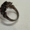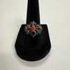Sterling silver, Coral, black Onyx and green Onyx spider ring - size 8