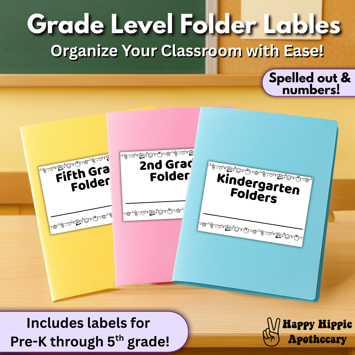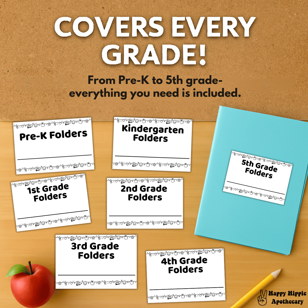 - 14 printable folder labels (Pre-K to 5th grade)