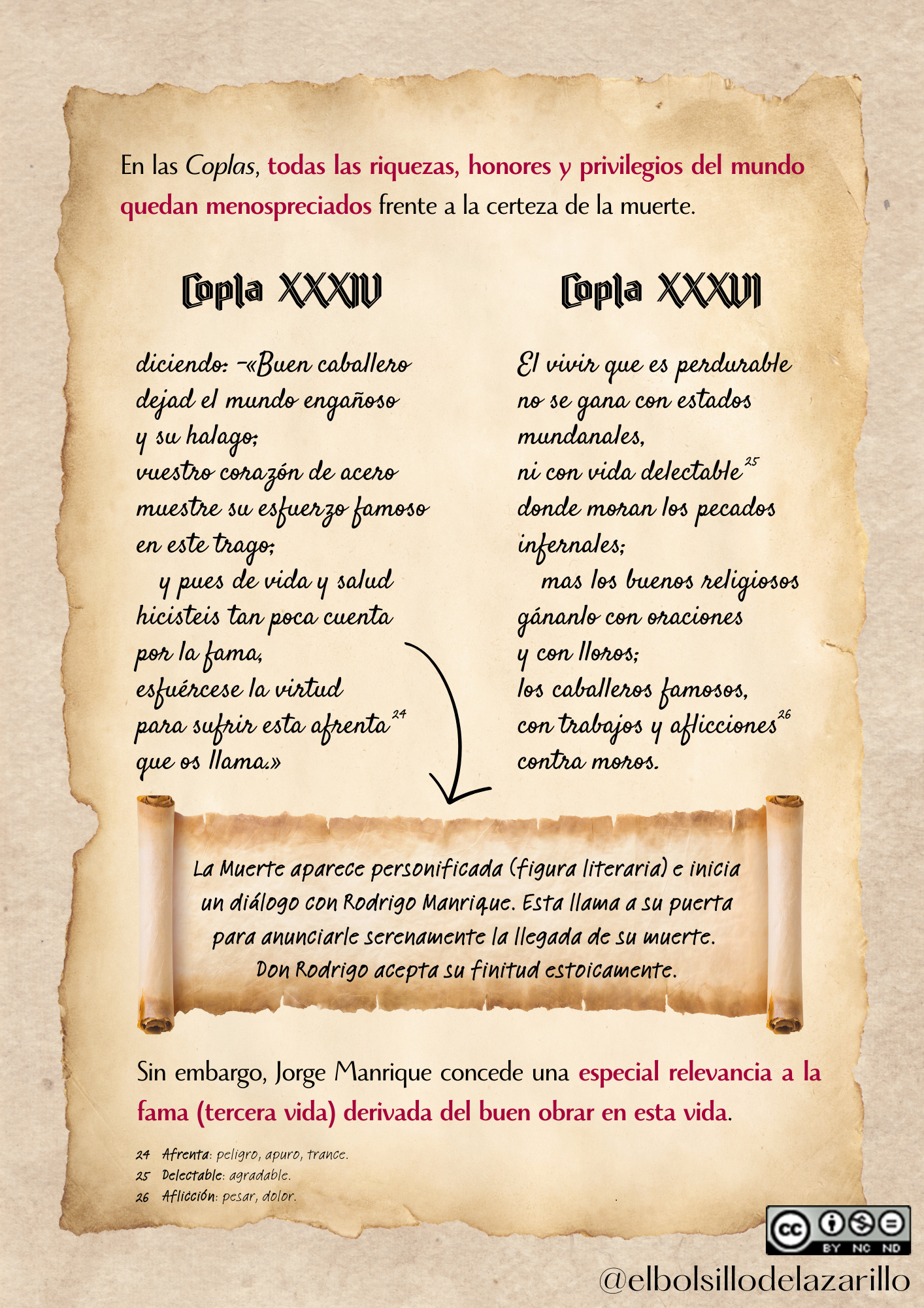 Este tema es muy especial para mí porque es el que me dio la plaza en las oposiciones de Secundaria en la especialidad de Lengua Castellana y Literatura. Además, disfruto mucho dándolo en clase por la profundidad filosófica de las preciosas Coplas de Manrique.