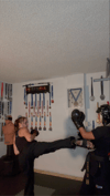 Join us for her third lesson; SPARRING! 3 different views, lots of movement, kicks, yells & fun.