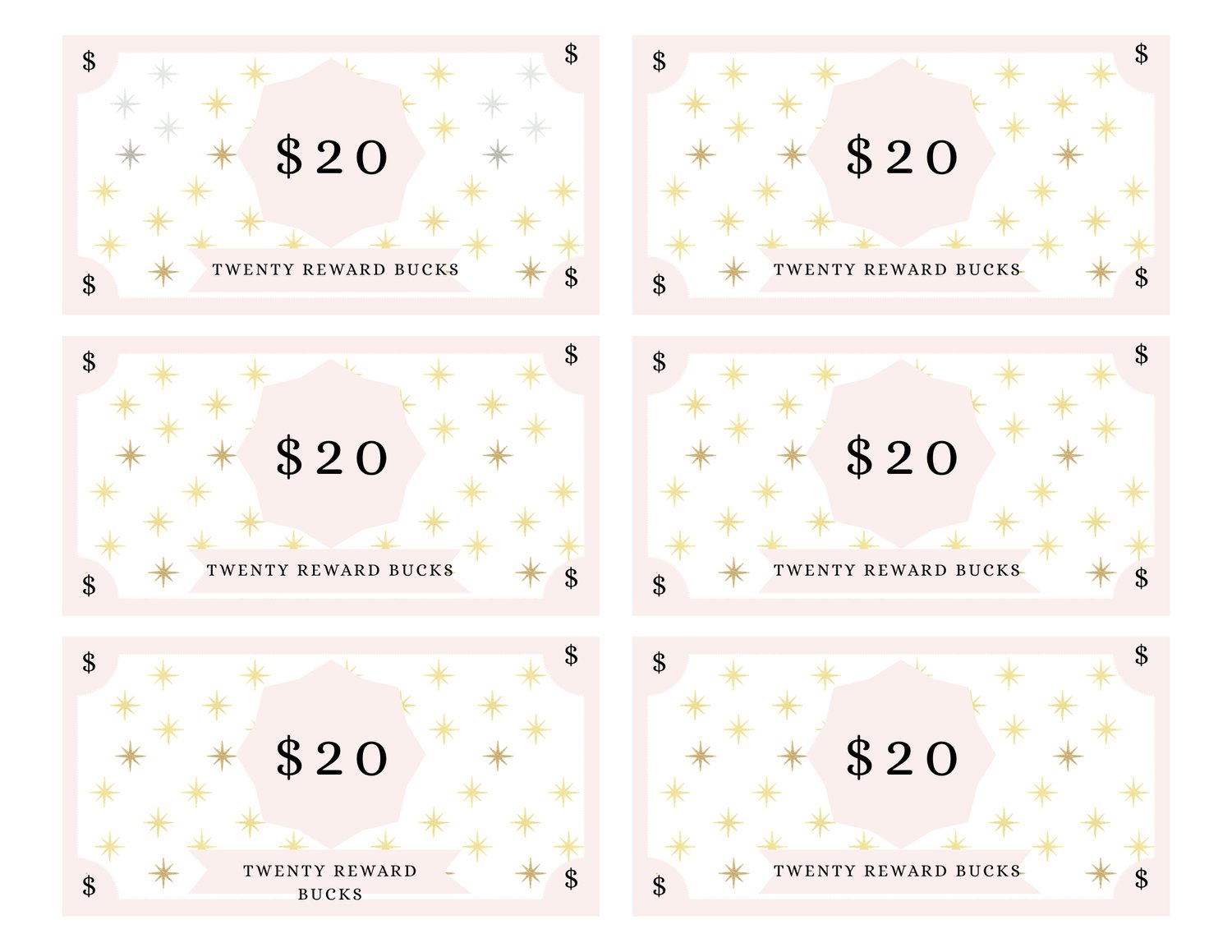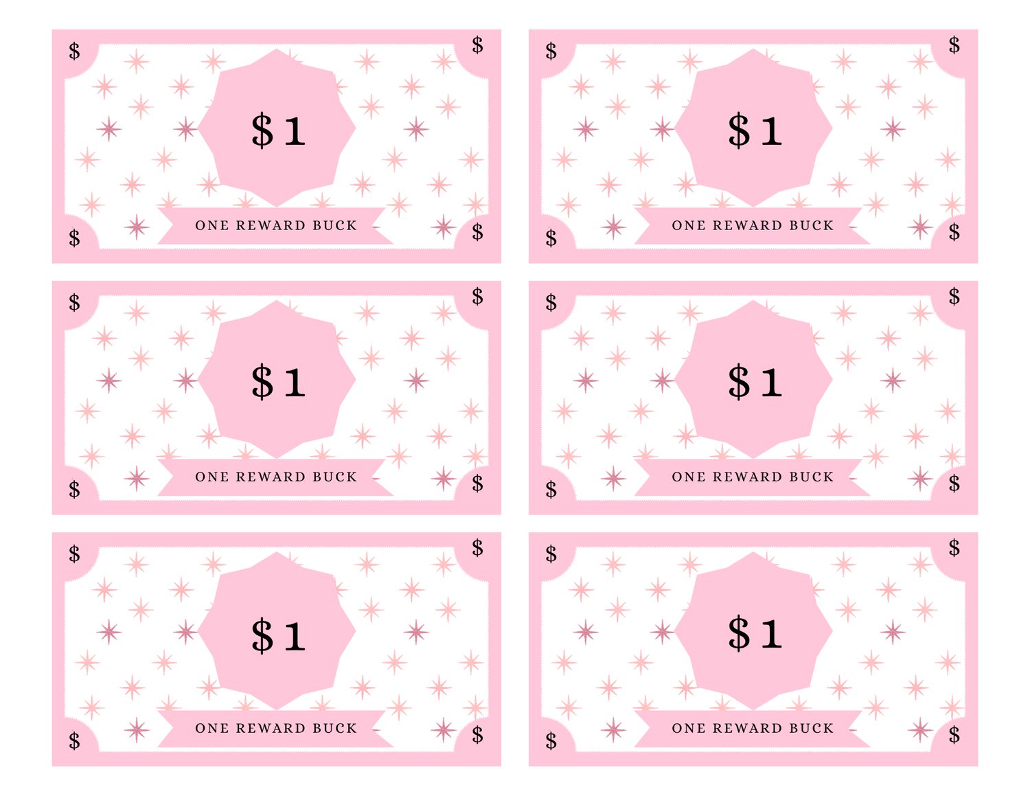 - Printable Reward Bucks in these denominations: