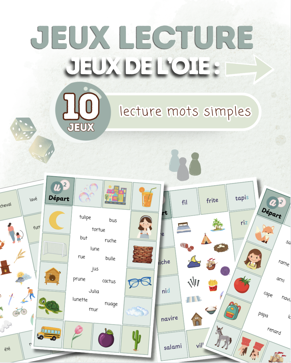 Découvrez nos 10 plateaux de lecture interactifs pour enfants ! Chaque plateau propose un jeu autour d’une voyelle (A, I, O, U, E, É), avec deux niveaux de difficulté pour progresser à son rythme.