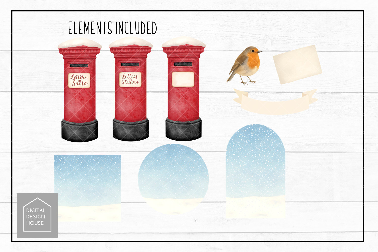 Welcome to this listing for a CHRISTMAS POST Clipart Set. You get a collection of clipart to make up your designs including 3 post boxes with snow on top, one with a Letters to Santa label, one with a Letters to Heaven label and one with a blank label. You also get a blank letter which you can rescale and rotate. There is also a robin and banner included. There is also a background included in separate shapes, square round and arch. Perfect for designs for family and friends or memorial designs. Suitable for sublimation and print. Perfect for everything from cards to cushions. The file is available to download instantly after purchase. This product includes a small business commercial license which allows commercial use of the file to create unlimited physical products. Digital redistribution, re-sale or use is not allowed.