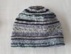 This 4ply baby Beanie has a garter stitch brim and is then worked in blocks of stocking stitch and garter stitch. The self-striping yarn adds extra interest to this easy knit design.