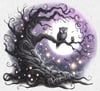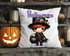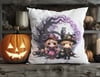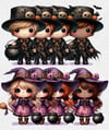 Super cute Halloween boy and girl, spooky Chibi witch, beautiful background featuring an owl and a twisted tree plus 4 boys & 4 girls with blonde, brunette and red hair, includes darker skin option. Sublimation, print, 9 PNGs. Designs are 300 dpi transpar