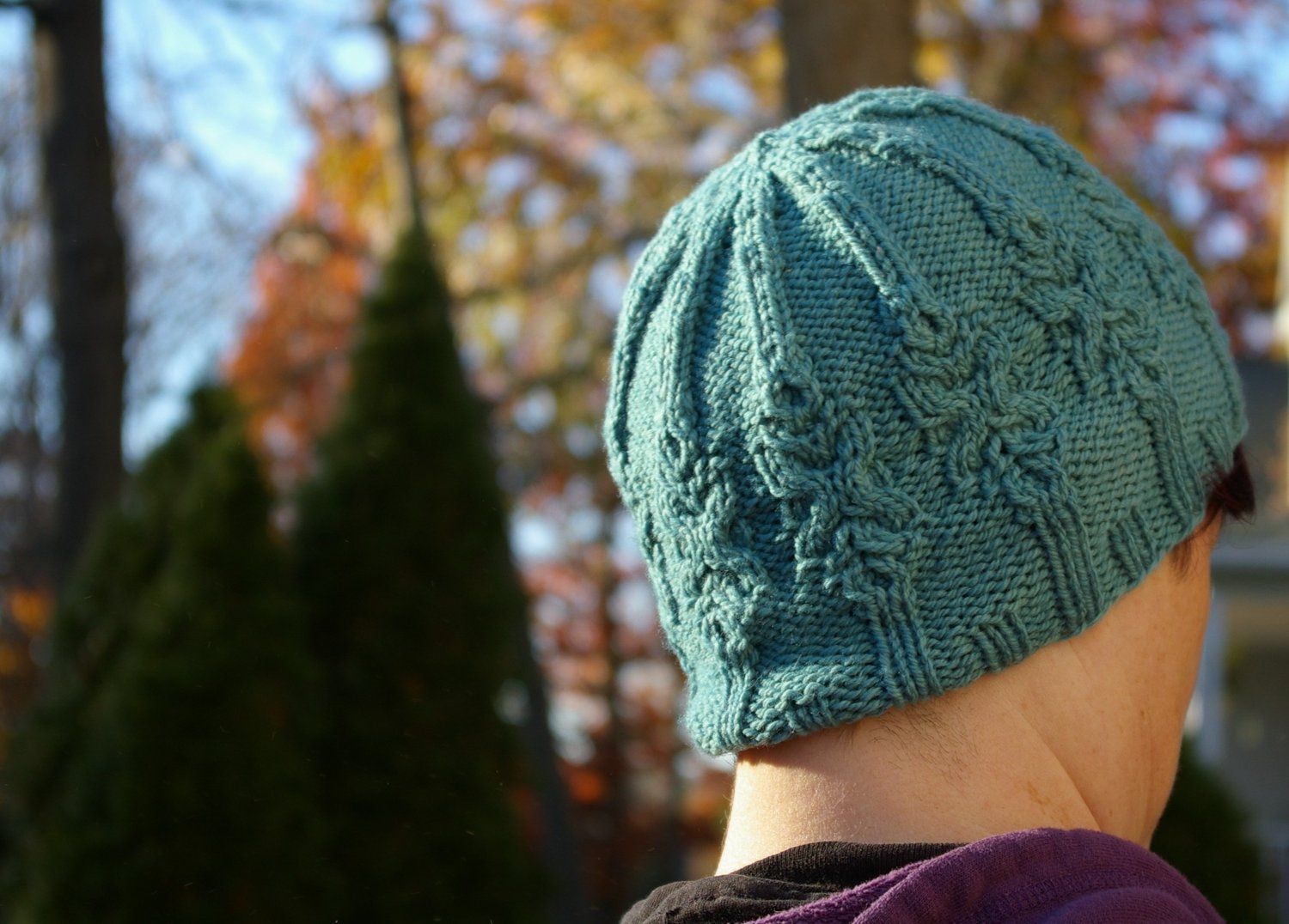 This hat combines two of my favorite design elements: ribbing and cable medallions. The result is a snug beanie that stays on and keeps the head cozy.