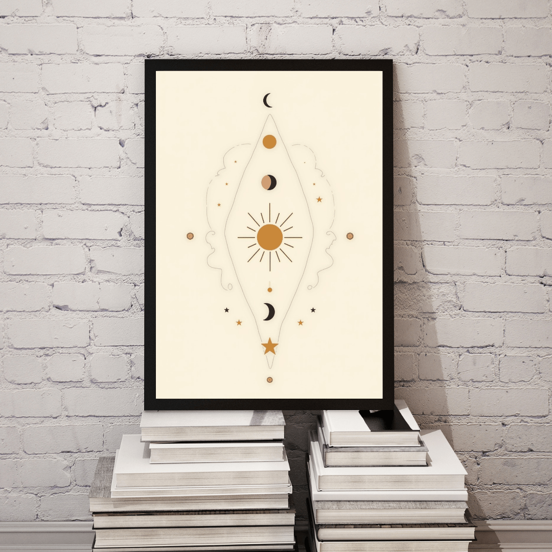 Downloadable boho sun and moon phases wall art featuring spiritual feminine line art and celestial symbols. Perfect for astrology lovers, cosmic home decor, witchy aesthetics, or sacred feminine altars. This high-res printable is ideal for bedrooms, meditation spaces, and spiritual corners. Easy to print and frame at home or online. Add a touch of the universe to your wall decor today! ๐๐