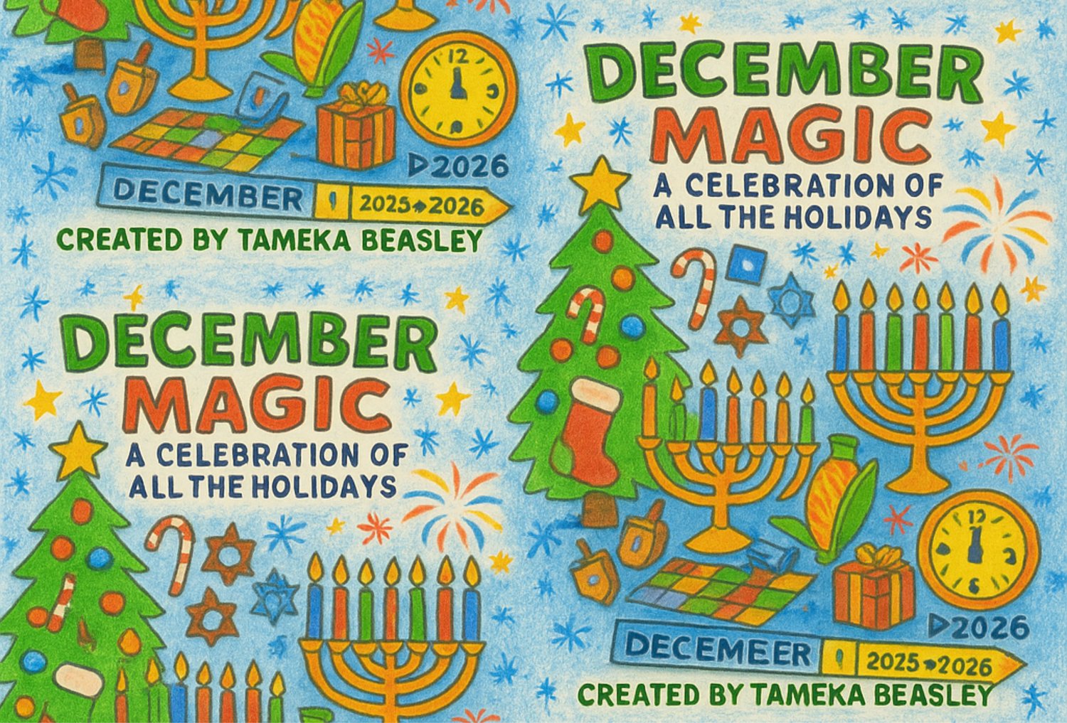 Wrap your gifts in pure December joy! Our “December Magic: A Celebration of All the Holidays” wrapping paper brings Christmas, Hanukkah, Kwanzaa, and New Year’s together in one bright, crayon-textured design that feels warm, nostalgic, and full of holiday spirit.