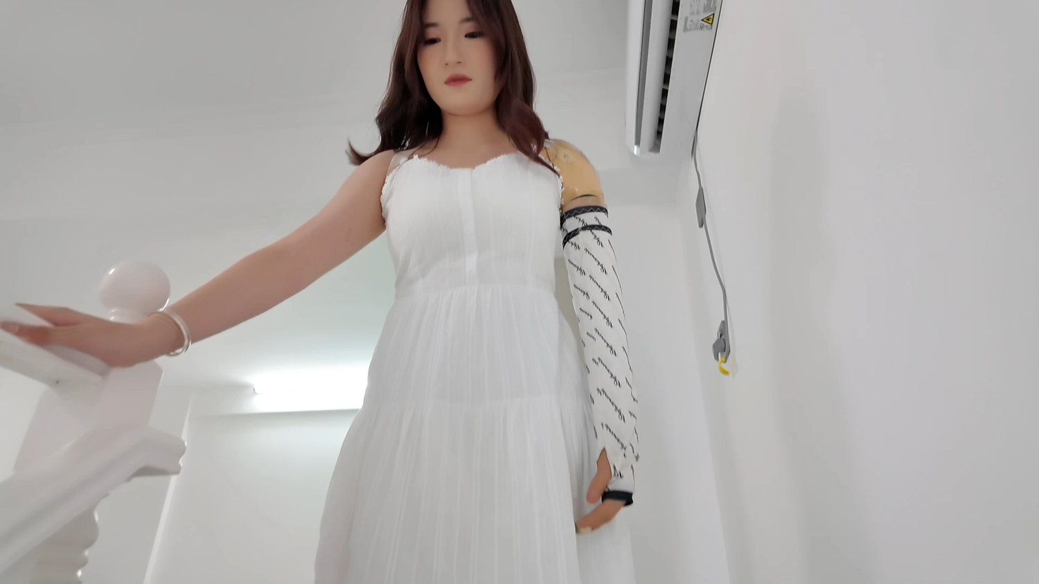 Beibei: OOE Amputee Girl gets up early to wear a prosthetic leg and go down the stairs