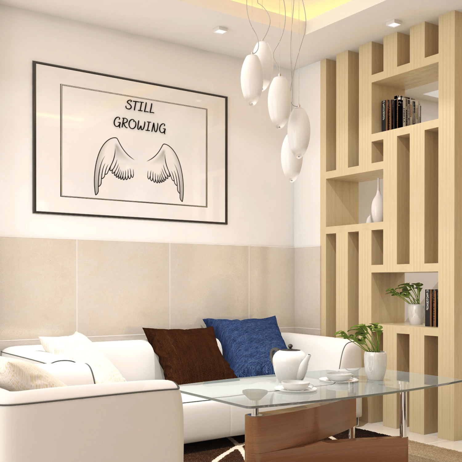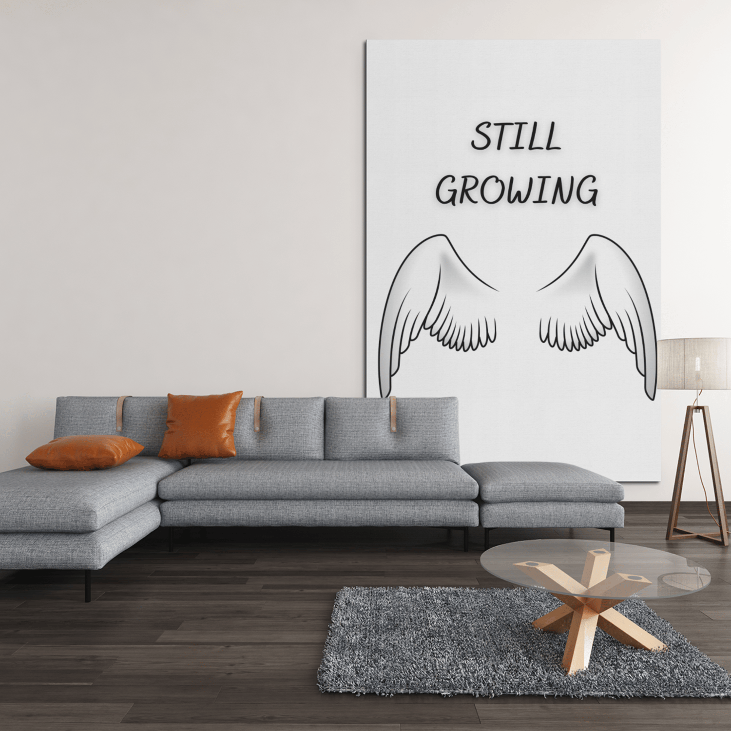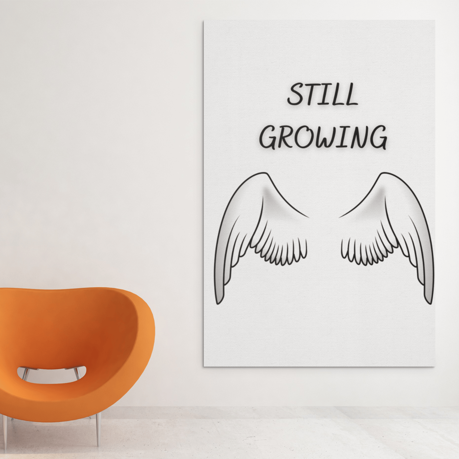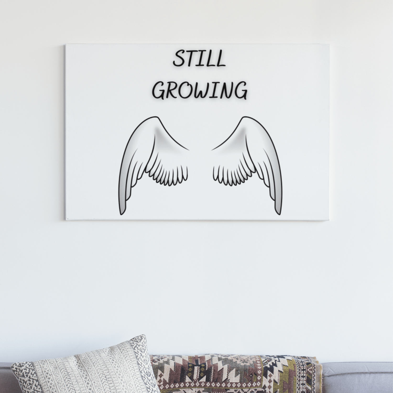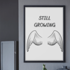 Still Growing Printable Wall Art – Minimalist Quote with Angel Wings, Black White Decor