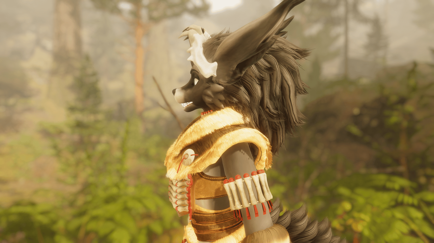 Its outfit demands respect, covered in a variety of bones and fur, trophies from the numerous beasts slain by the hands of such a powerful warrior. You may choose to show as much of your skin as you'd like, stripping off all the armor and mask if you choose, or you can be the true warrior a Zay'fri really is, and display your combat prowess to everyone around you by doning the full attire.