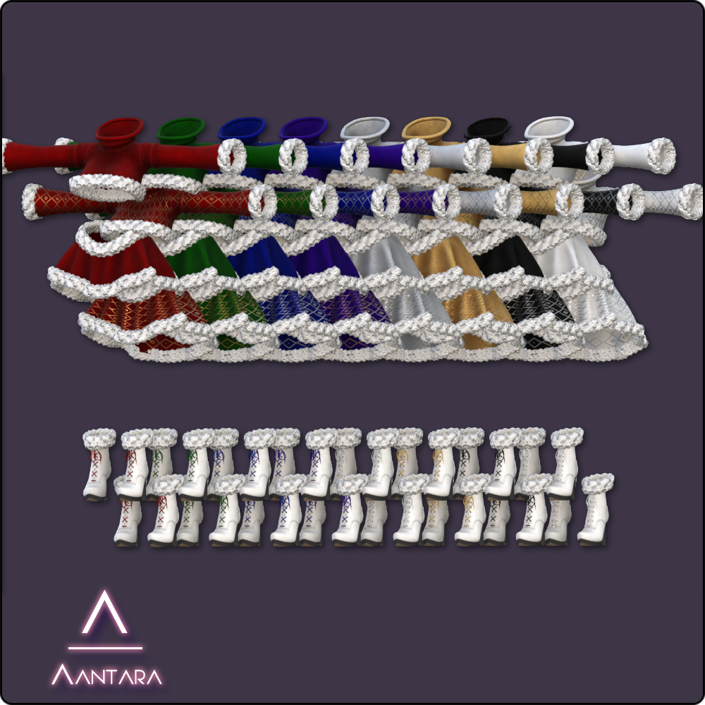 Full outfit on 1 UV - 1 Material. 8 texture color variants with and without metallic patterning. Masks included for customization.