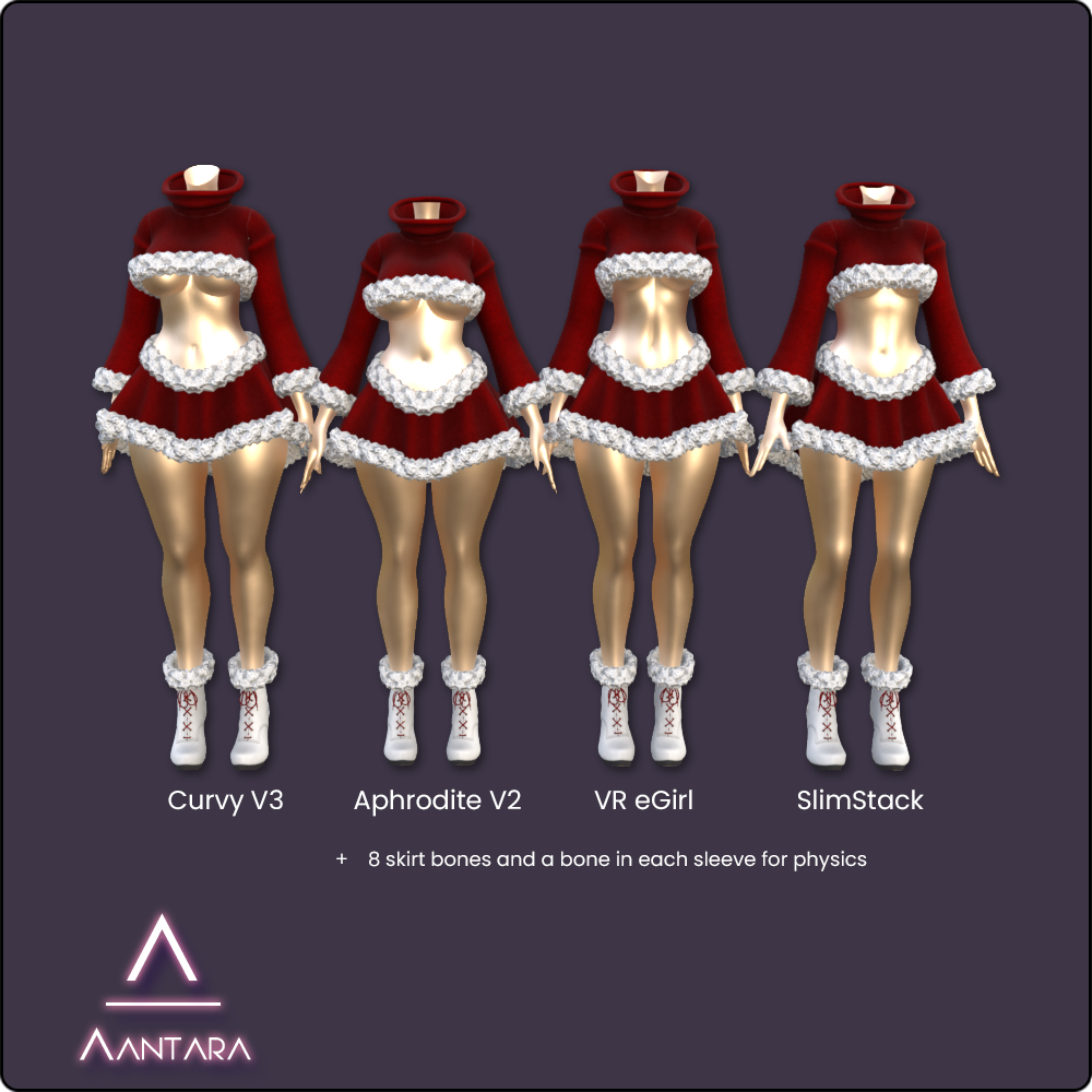 Fit and rigged to Curvy Base V3, Aphrodite Base V2, VR eGirl Base, and SlimStack Base