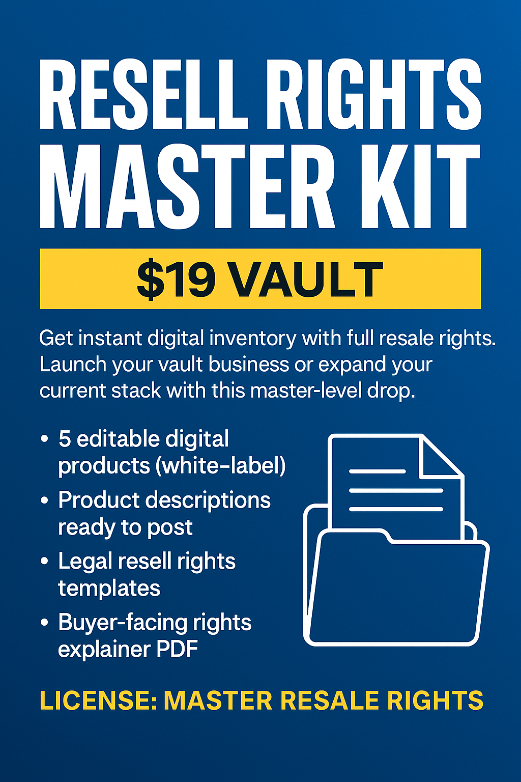 Get instant digital inventory with full resale rights. Launch your vault business or expand your current stack with this master-level drop.