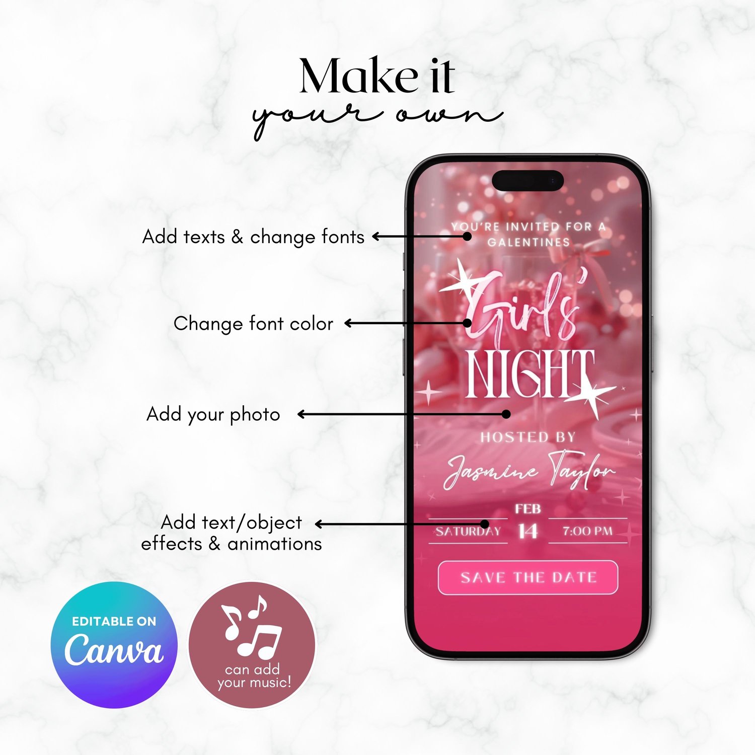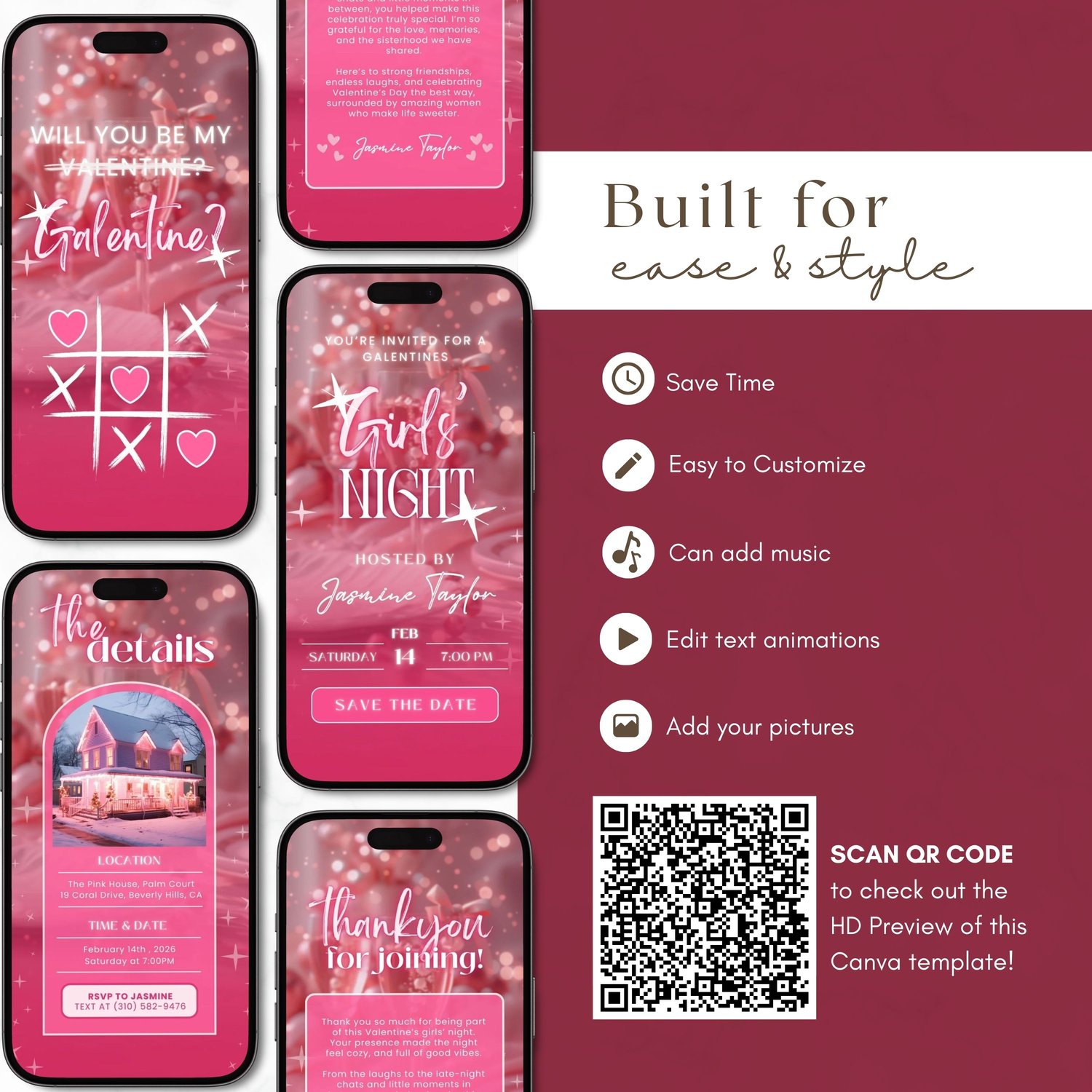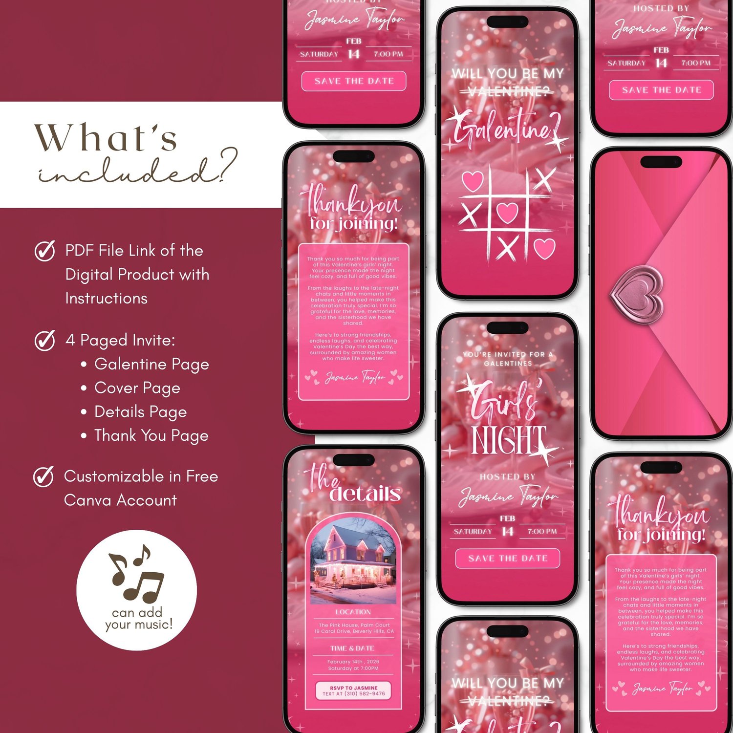 💕 Pink Galentine’s / Valentine’s Girls Night Invitation | Will You Be My Galentine? | Animated Digital Canva Invite (4 Pages) 💕