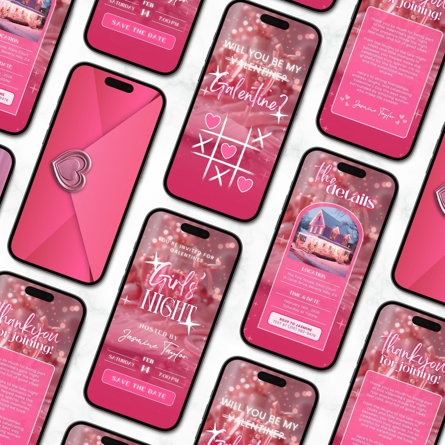 Host an elegant and unforgettable Galentine’s or Valentine’s Girls Night with this pink digital invitation designed for a classy, clean, and modern aesthetic. Featuring soft pastel pink tones, minimal details, and an elevated layout, this invite is perfect for cocktail nights, intimate dinners, or girls-only celebrations.