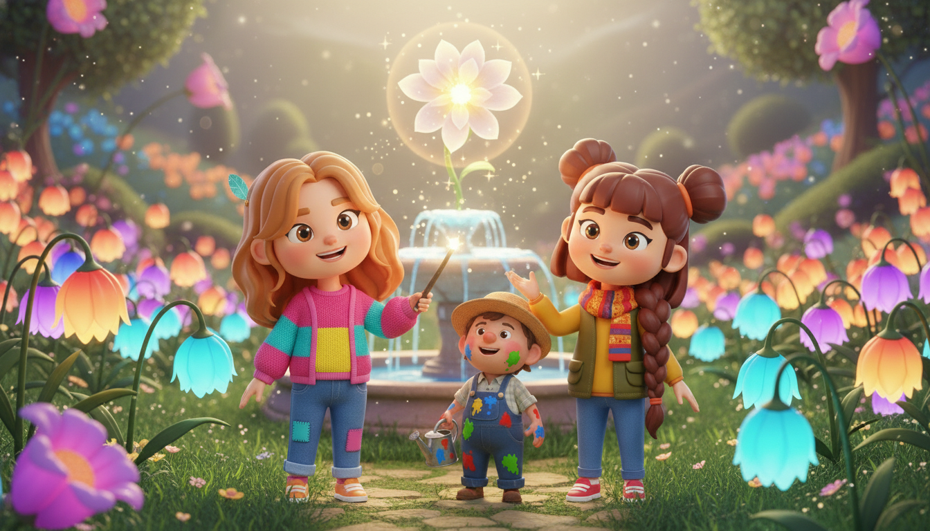 Lila and Luna travel to a quiet valley where flowers have forgotten how to bloom. With tiny gardener Pip, they wake the sleepy garden through song, joy, and a special Heartflower that only opens to true feelings from the heart, learning that even the quietest places remember when you share your light.