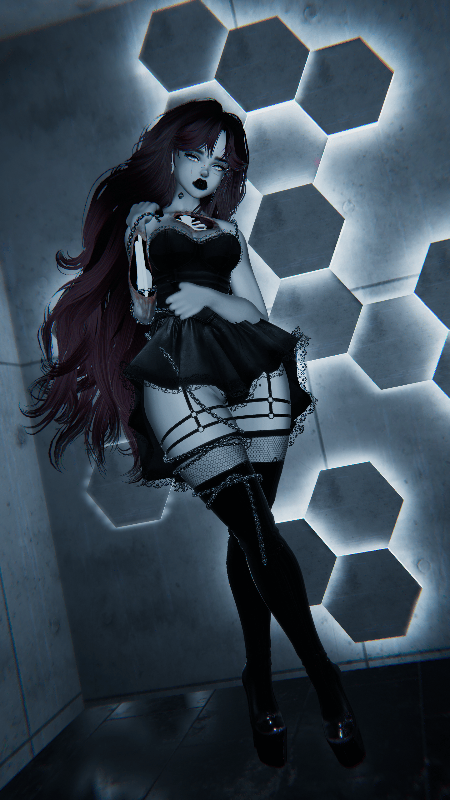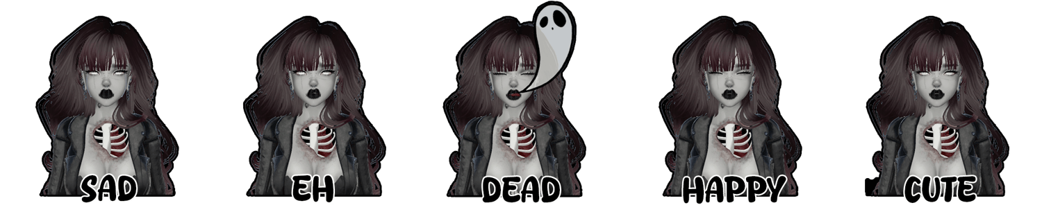| Head | Body | Ears | Eye Textures | Heart | Long Hair | Bun | Outfit 1 | Outfit 2 | Dress | Bodysuit | Pants | Combat Boots | Chain |