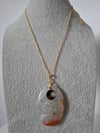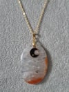 Un collier élégant et puissant, orné d’un pendentif en quartz rutilé hématoïde aux nuances blanches et orangées, sublimé par un charm lune et étoile doré. Une pièce qui unit énergie terrestre et magie céleste, pour t’accompagner avec force et douceur.