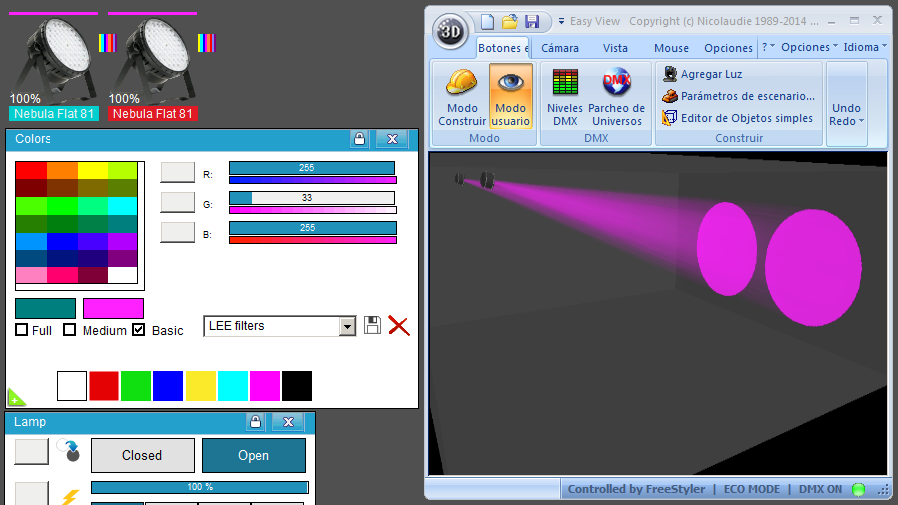 Esta Librería SSL2 está optimizada para trabajar con Magic 3d Easy View. Es decir para ver una representación 3D de las secuencias que estemos realizando con Freestyler, QLC+ o cualquier otro soft que se conecte con Magic 3d.