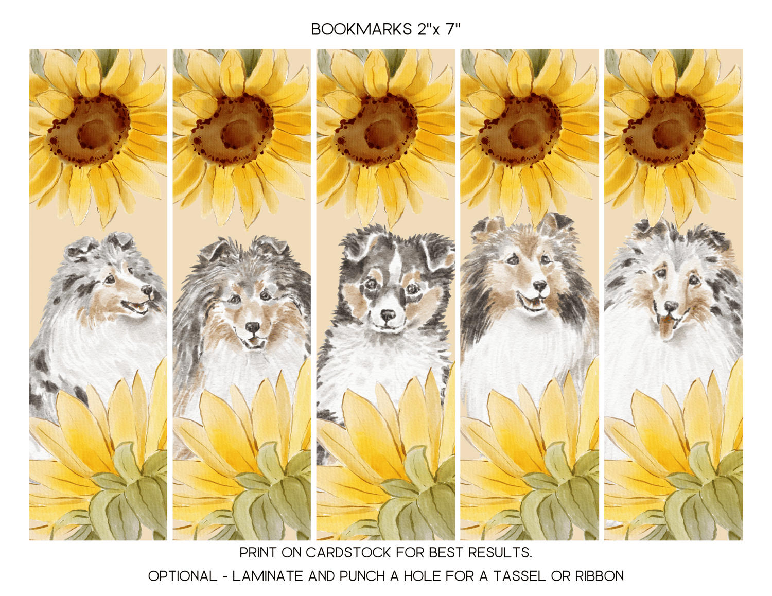 SHETLAND SHEEPDOG SUNFLOWER SERIES PRINTABLE BOOKMARKS