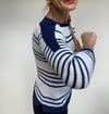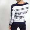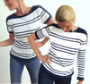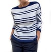 Dieser leichte Sommerpulli im Stil eines Bretonen-Shirts wird komplett nahtlos in einem Stück von oben nach unten gestrickt.