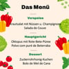 ✔ Jede Menü-Ausgabe mit Farbfotos, Zutatenlisten und Zubereitungszeiten