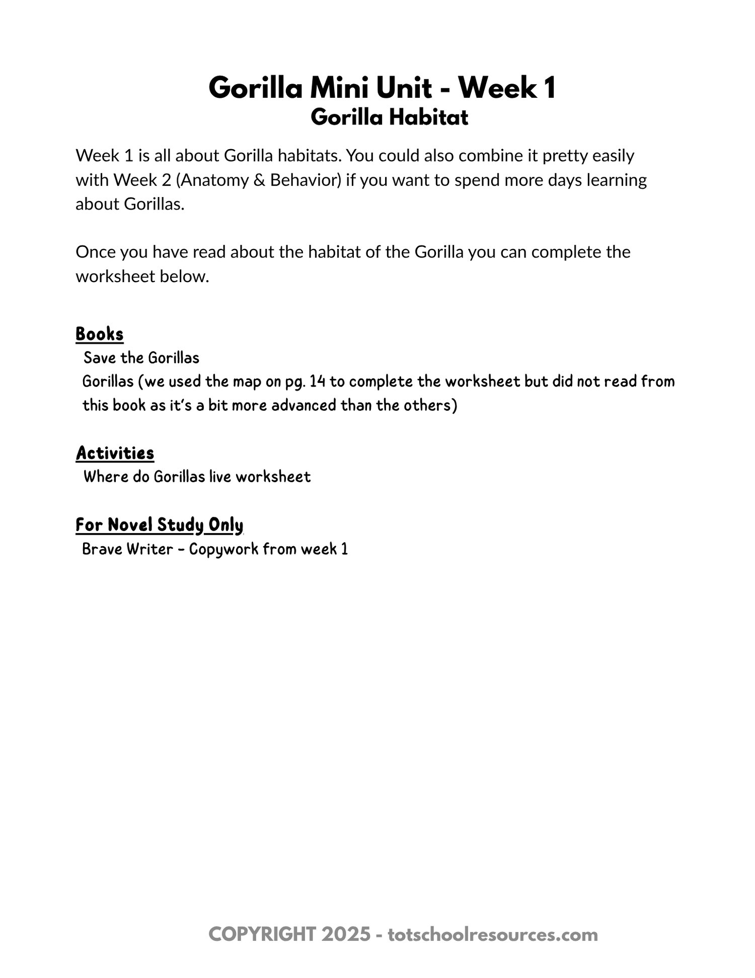Ready to learn about Gorillas? You can do this mini unit alone or pair it with a novel study of "The One and Only Ivan".