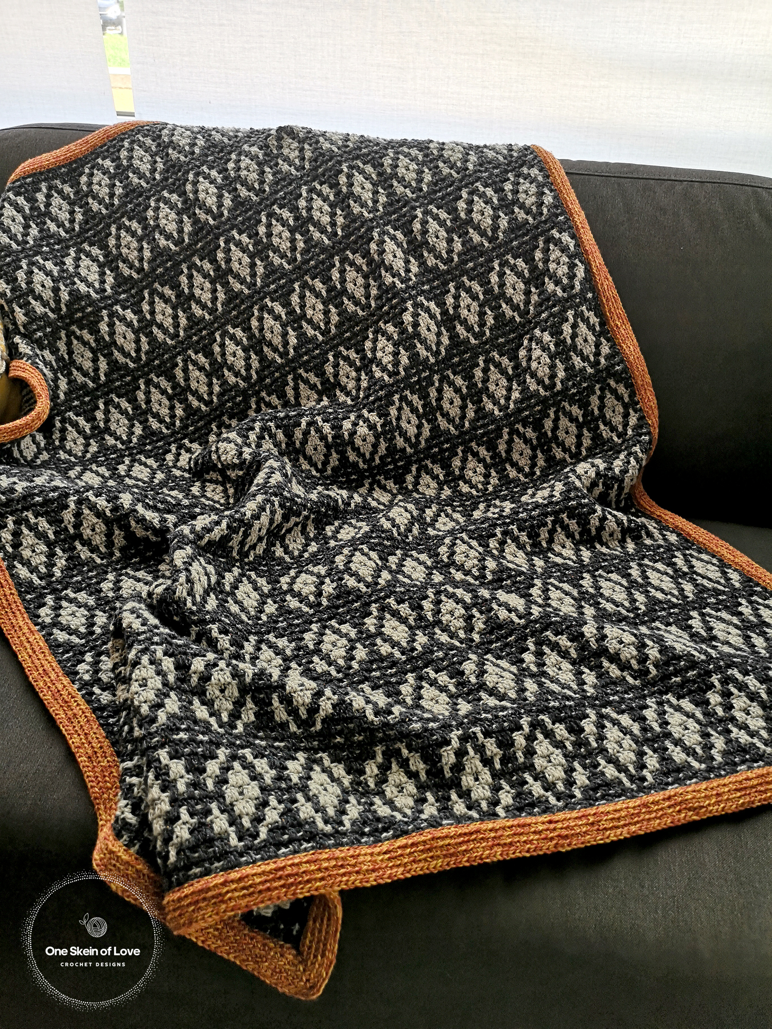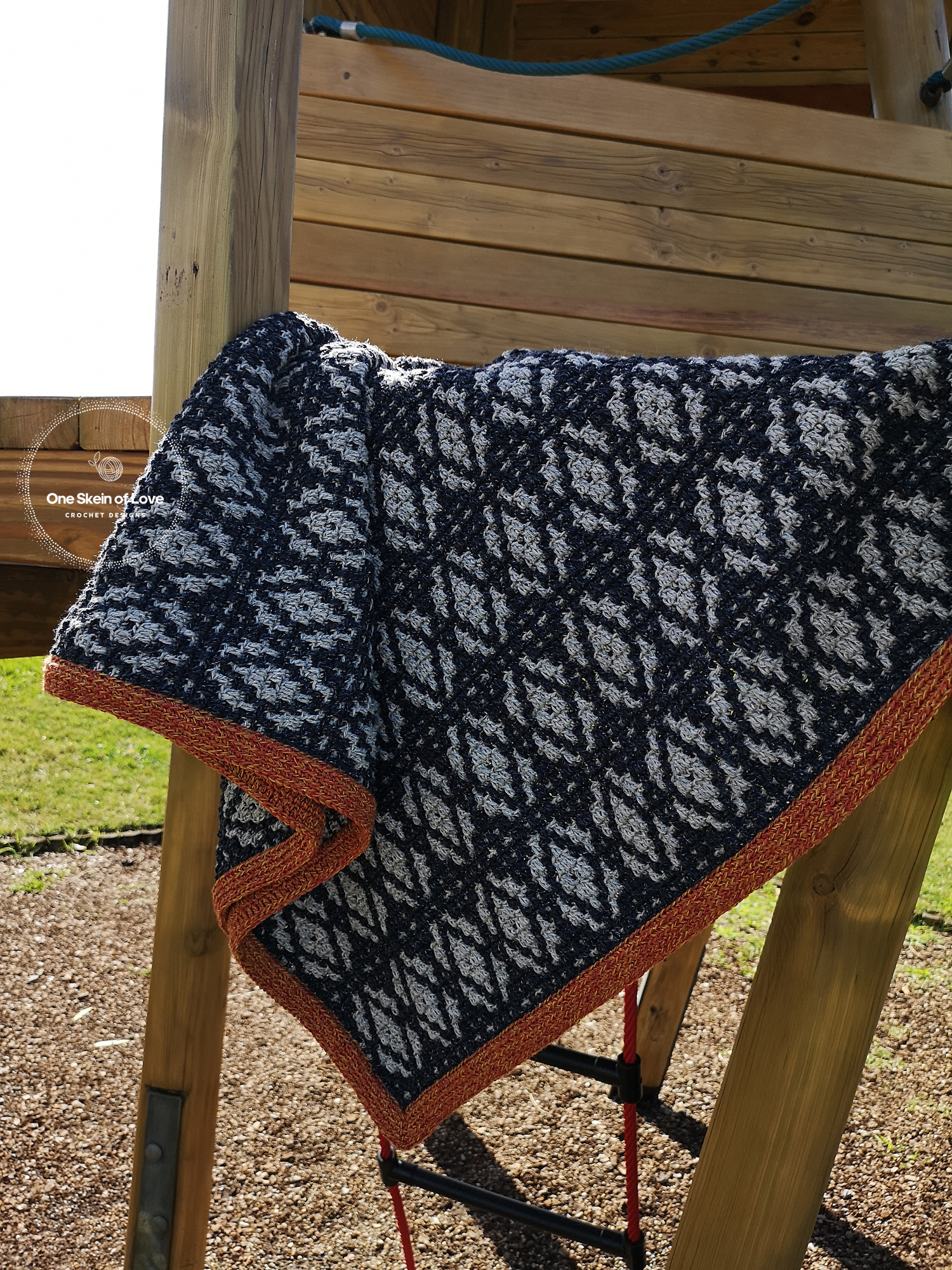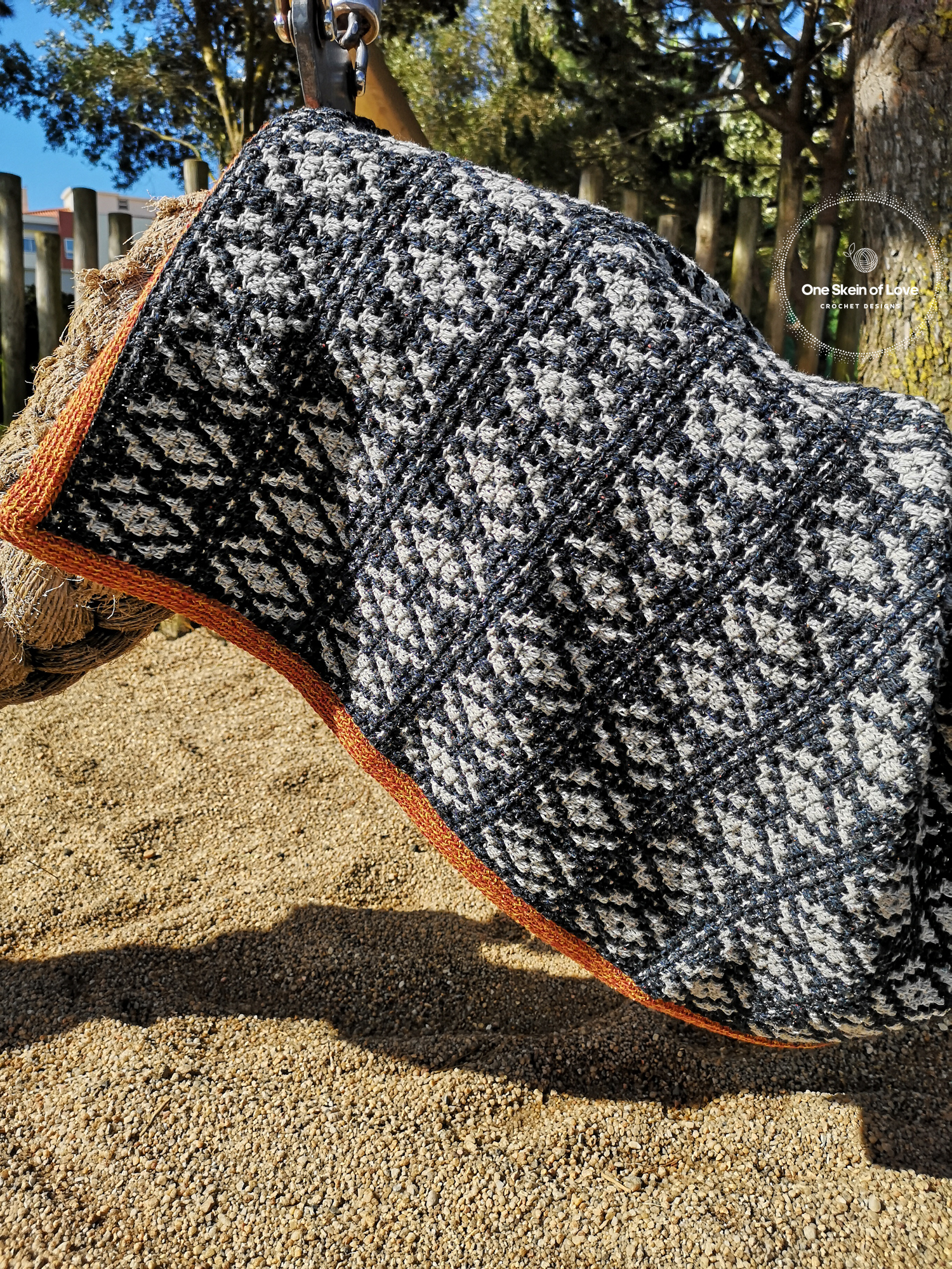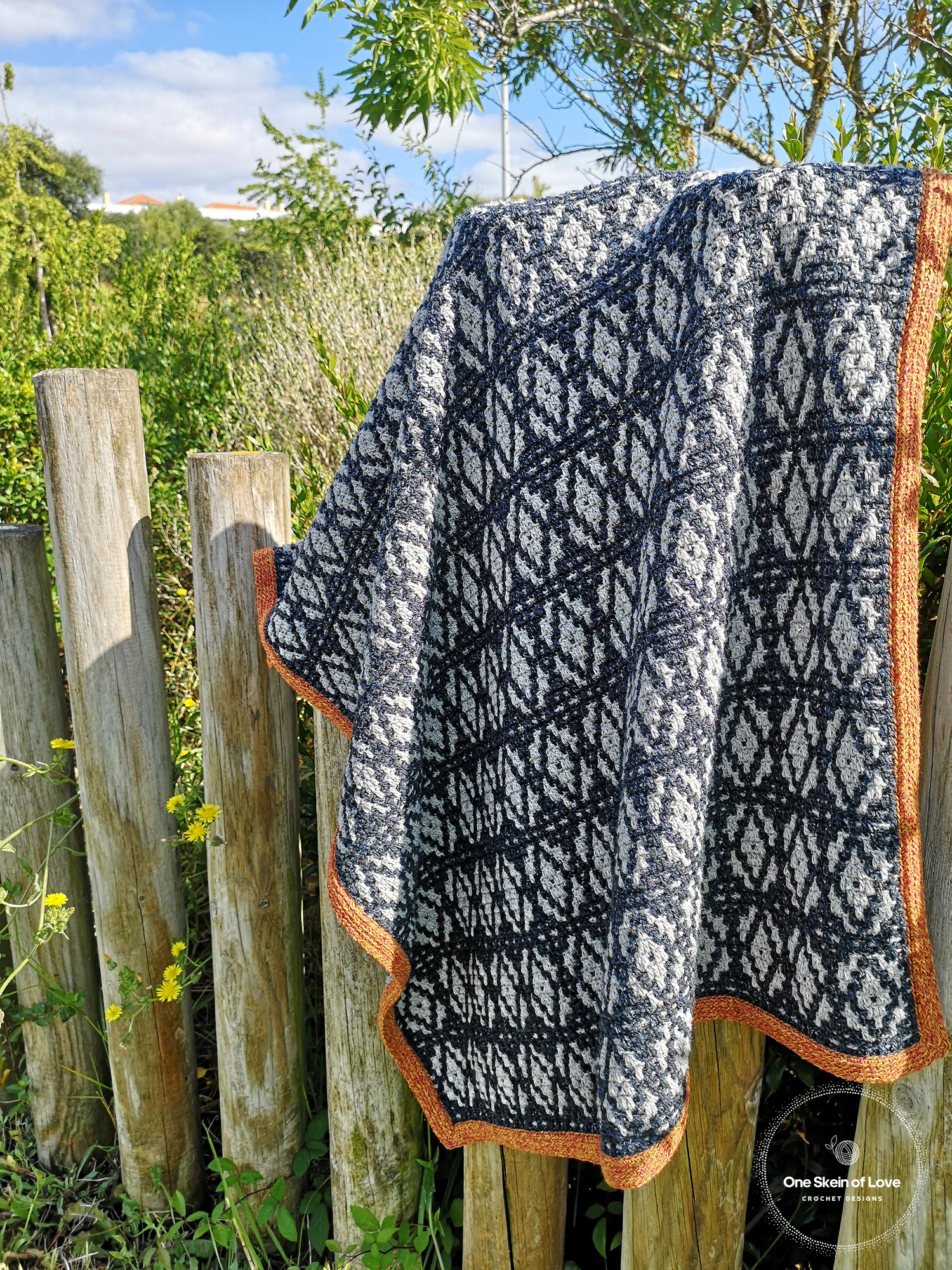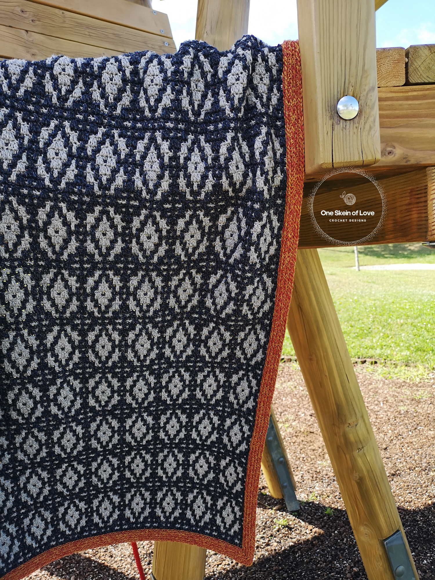 The pattern is adjustable in size and is using the mosaic crochet overlay technique.