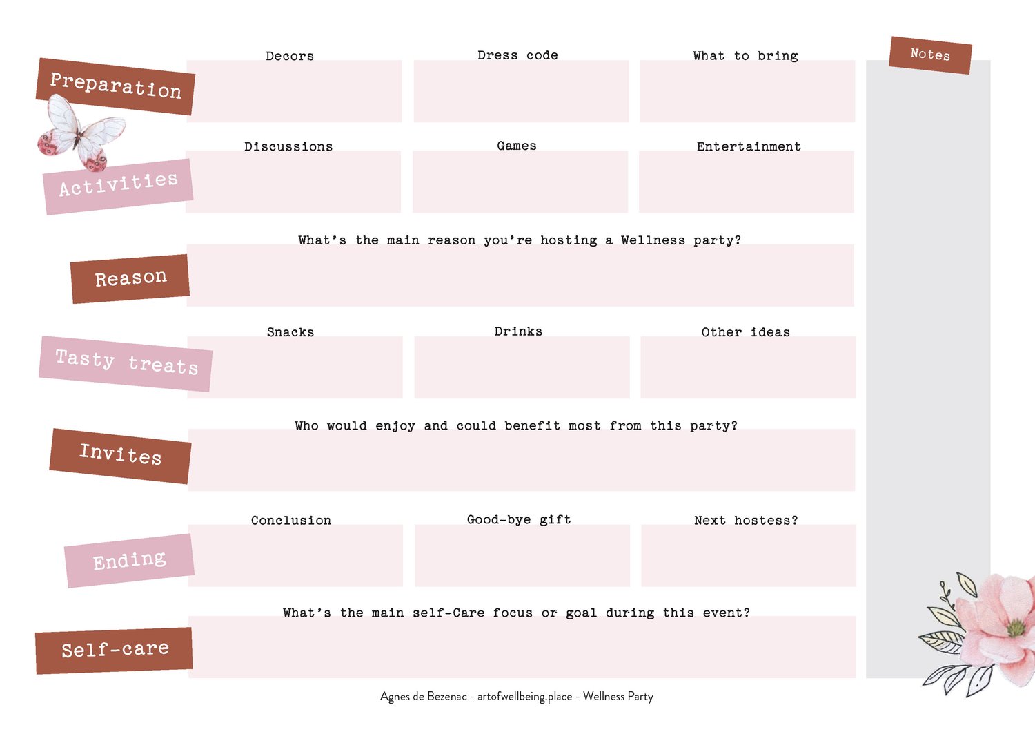 Using the accronym P.A.R.T.I.E.S, you will be able to easily remember all the essentials in hosting your Wellness party. Plus an easy to use checklist to be sure you get it all done in the most joyful and effortless way possible.