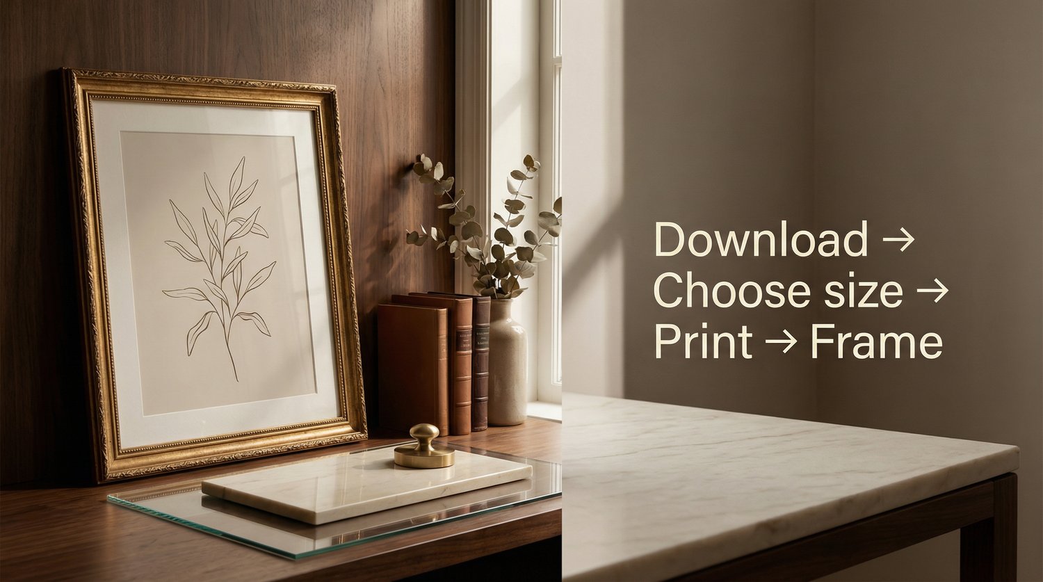 Download → select your size → print at home, local print shop, or online printer. Print at 100% / Actual Size for best results.