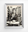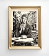 Monochrome Gentleman Café Scene Art Print uk046