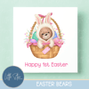 ⭐️ 2 Bunny Bears ( boy and girl) sitting in Easter Basket with Easter Eggs and Flowers