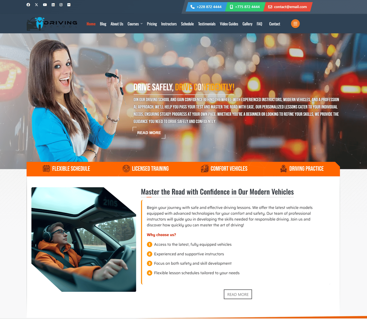 Main features of the Driving School template: