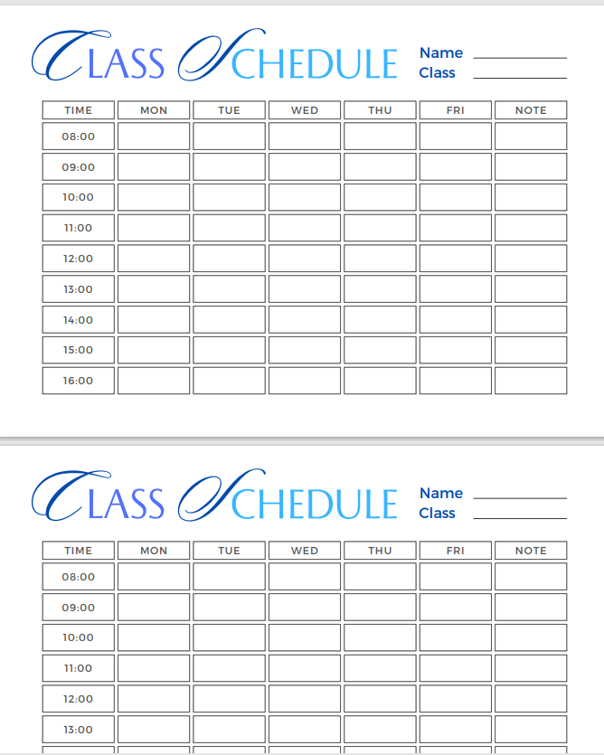 You'll get pdf digital printables 33 ClassSchedule with 4 weekly Schedule via Email.