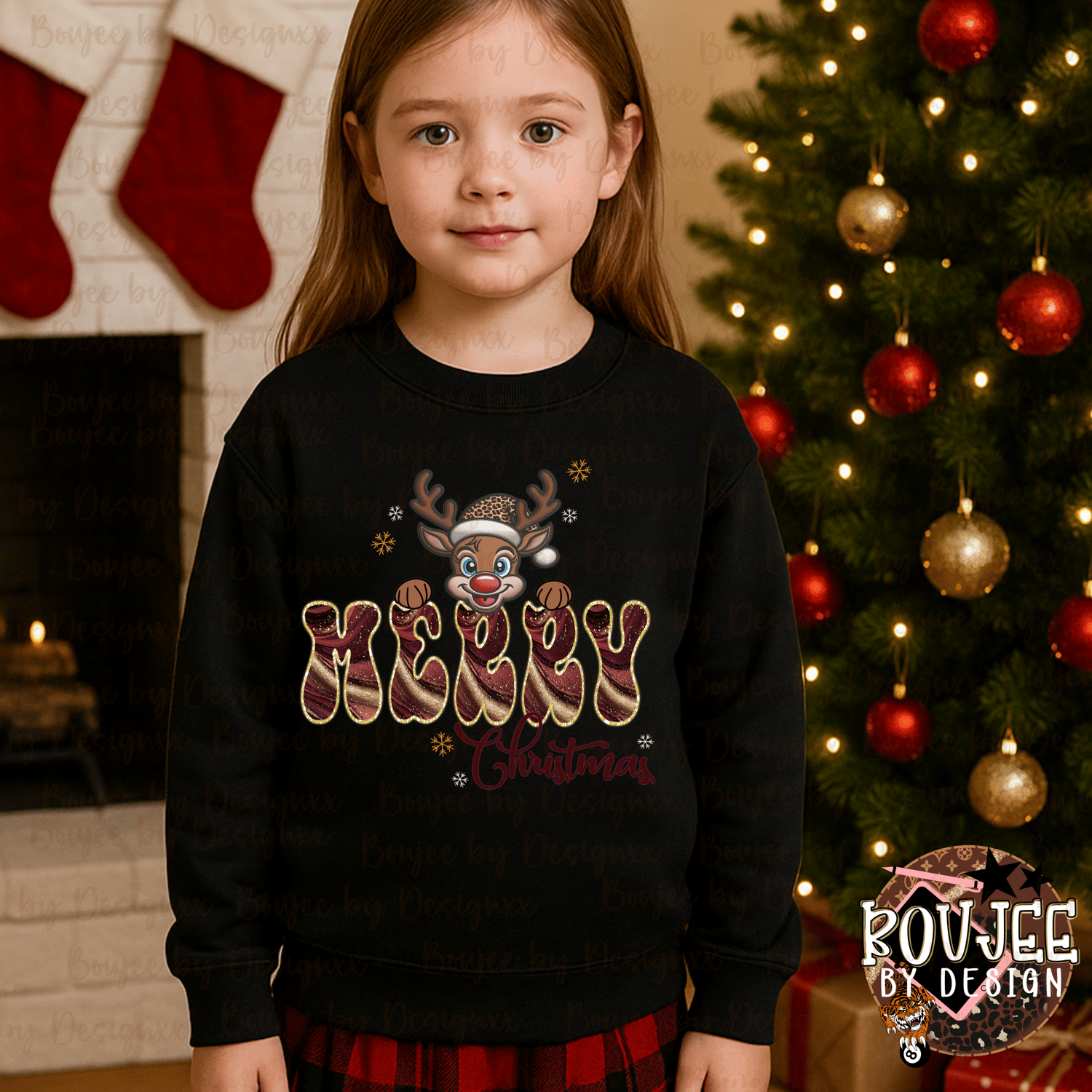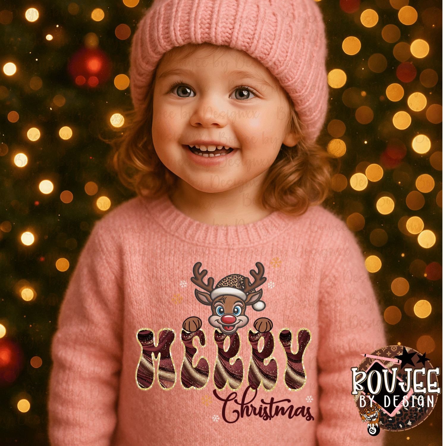 Merry Christmas Reindeer PNG – Festive Leopard & Glitter Letters – Sublimation/DTF Print – High-Resolution Digital Download