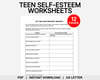 This Teen Self-Esteem Worksheets bundle includes 12 worksheets that support self-reflection and emotional awareness and is suitable for both personal and professional use.