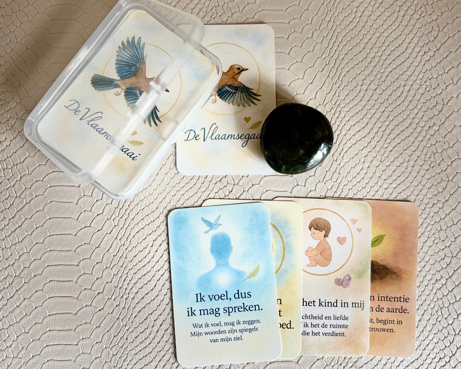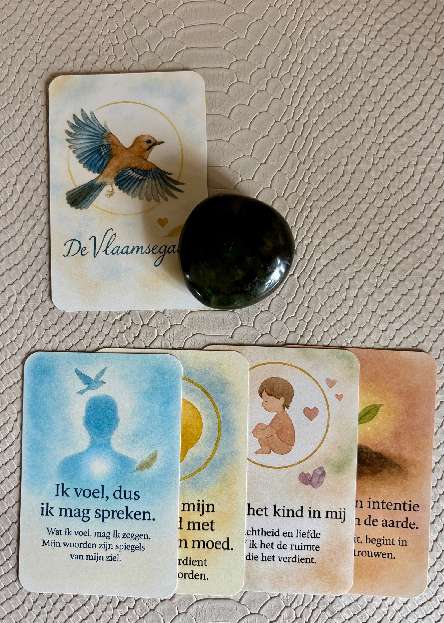 De kaarten zijn bedoeld om intuïtief te gebruiken: trek een kaart, lees, voel en laat de boodschap op je inwerken.