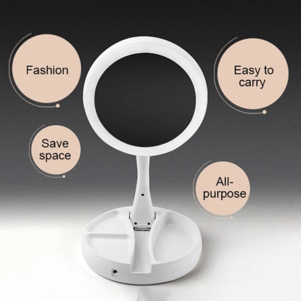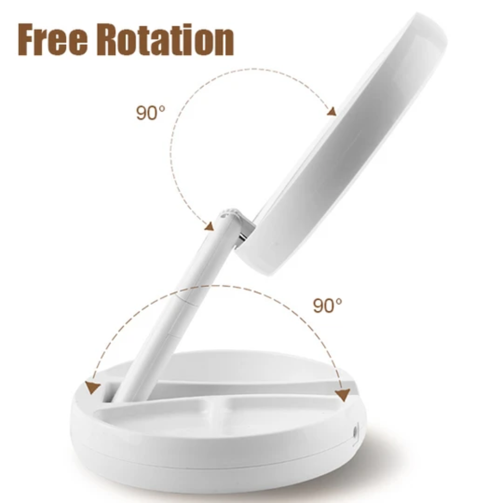 This vanity mirror folds down for easy storage or travel, making it an anytime, anywhere makeup mirror.