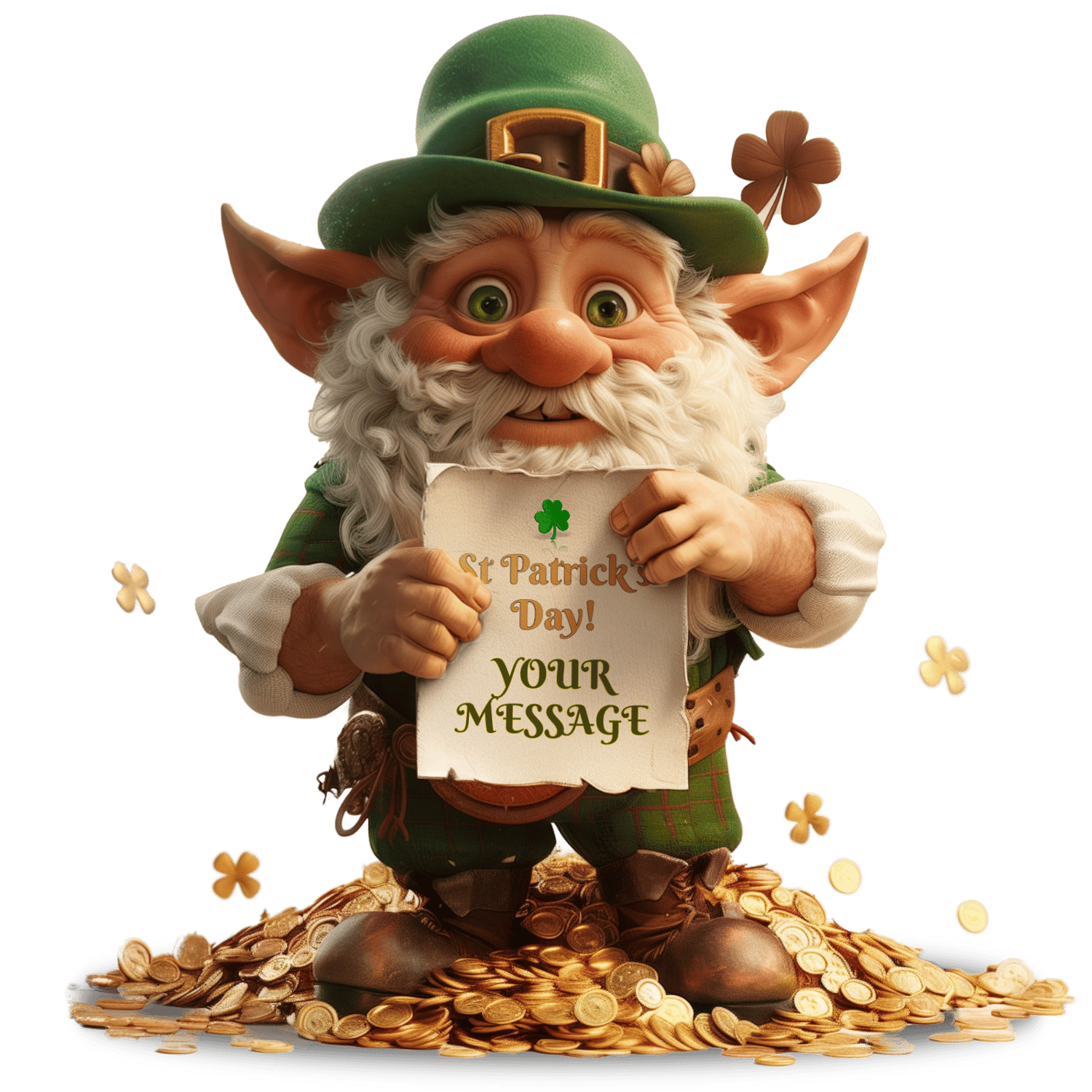 The golden coins and clovers further emphasize the theme of luck that pervades this holiday. It’s a vibrant and engaging visual representation meant to invoke excitement for St. Patrick’s Day.